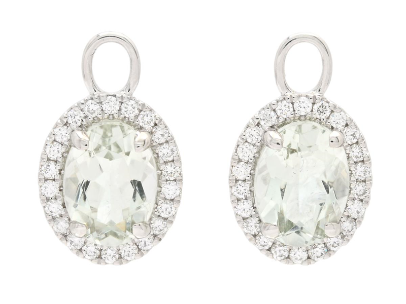EARRINGS ATTACHMENTS, 18K white gold, oval faceted prasiolites 2,34 ctw, 44 brilliant cut diamonds 0,27 ctw, approx. TW-W/VS, height 15,0 mm, loop 3,0 mm, weight 2,3 g.