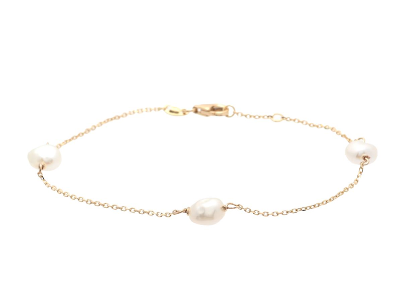 BRACELET, 18K gold with 3 items Keshi pearls approx. 6 x 4,5 mm, weight 1,8 g, length 17-18 cm