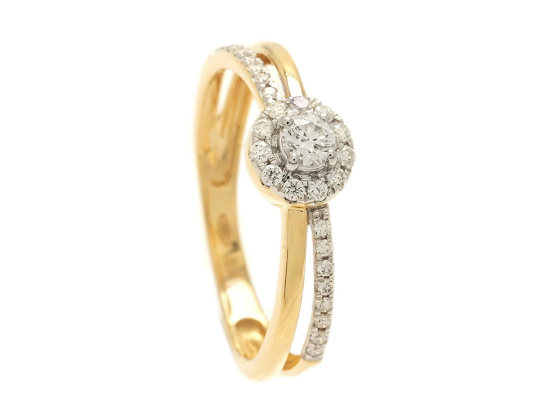 RING, 18K gold, brilliant cut diamond approx. 0,10 ct, approx. W(H)/SI small brilliant cut diamonds approx. 0,14 ctw, size 17 mm, weight 1,8 g.