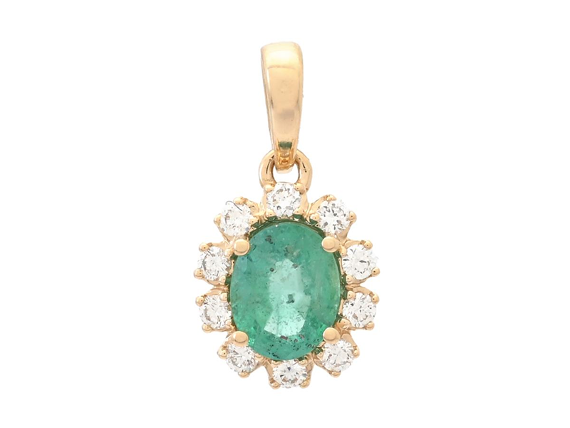 CLUSTER PENDANT, 18K gold, oval faceted emerald approx. 0,34 ct, 10 brilliant cut diamonds approx. 0,08 ctw, approx. W/VS-SI, height 7,5 mm, width 6,5 mm, weight 0,5 g.