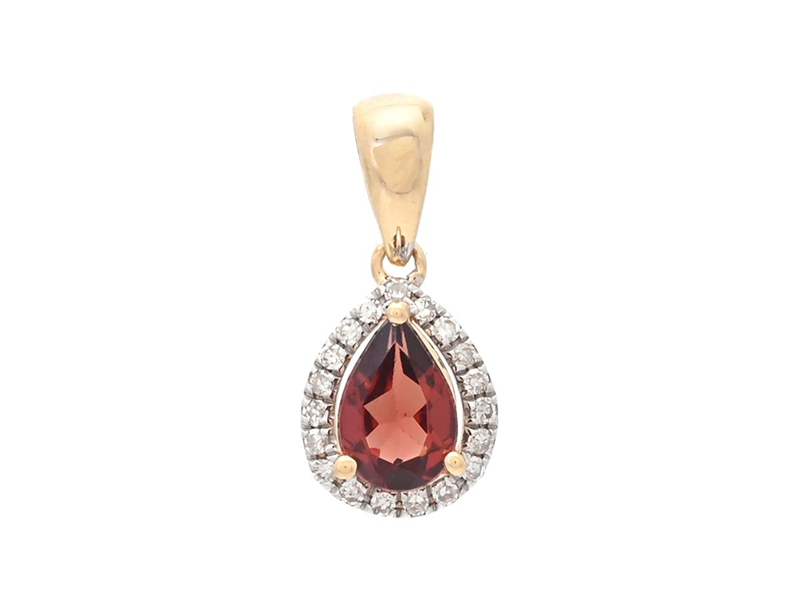 PENDANT, 18K gold, pear shaped garnet approx. 0,39 ct, single cut diamonds approx. 0,06 ctw, length 13,0 mm inc loop, weight 0,6 g.