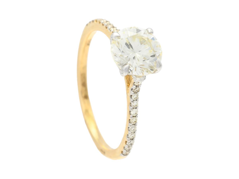RING, 18K gold/white gold, brilliant cut diamond 1,43 ct, approx. Approx.(N)/SI2, GIA laser inscription 2231313409 and certificate, 22 brilliant cut diamonds approx. 0,15 ctw, approx. Cr-Approx./VS, size 17 mm, weight 2,4 g.