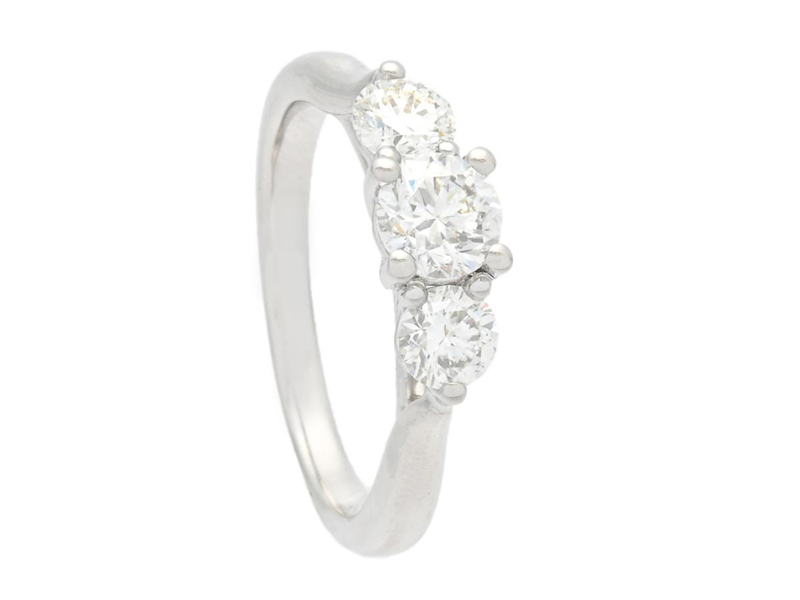 THREE STONE RING, 18K white gold, brilliant cut diamond 0,36 ct, TW(G)/VS1, GIA Diamond Dossier 6465907365, 2 brilliant cut diamonds 0,28 ctw, approx. TW/VS, size 17 mm, weight 3,8 g.