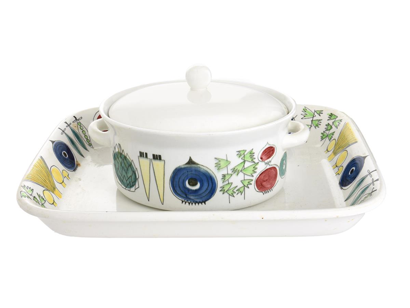 KAROTT/DISH, porcelain, "Picknick", Maianne Westman, Rörstrand, karott no 52, dish no 26, small notch, discolourations.