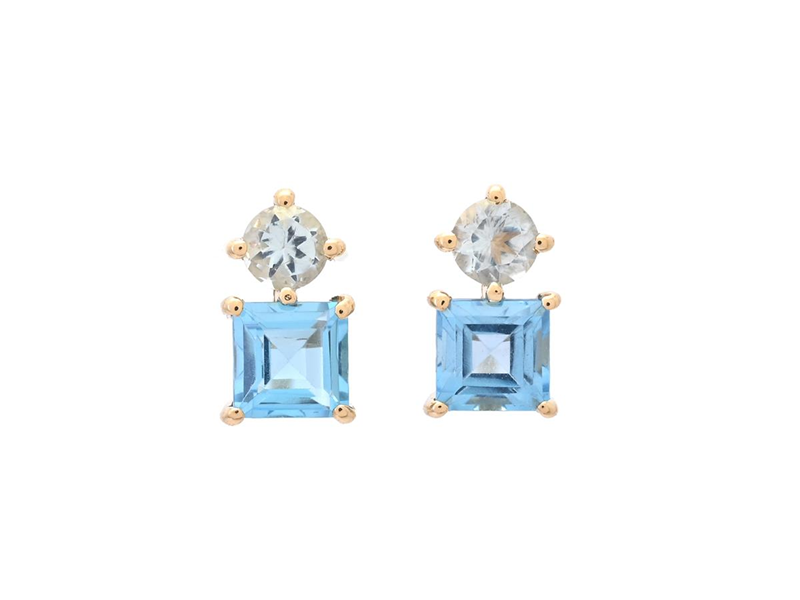 EARRINGS, 18K gold, aquamarines approx. 0,20 ctw, blue topazes approx. 0,83 ctw, pushback, height 8,0 mm, width 4,0 mm, weight 1,3 g.