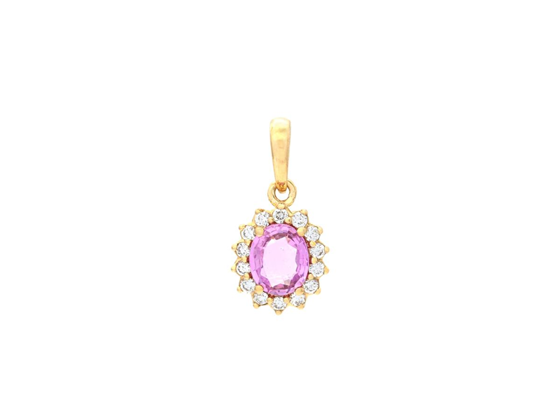 CLUSTER PENDANT, 18K gold, oval faceted pink sapphire 0,39 ct, 14 brilliant cut diamonds 0,08 ctw, approx. W/VS-SI, height 7,5 mm, width 6,5 mm, weight 0,6 g.