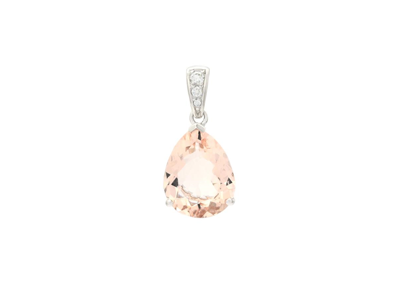 PENDANT, 18K white gold, drop shaped faceted morganite 2,02 ct, 3 brilliant cut diamonds approx. 0,03 ctw, approx. W/VS-SI, length inc. loop 16,0 mm, weight 1,2 g.