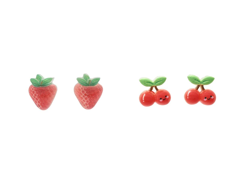 EARRINGS, 2 pair, sterling silver, plastic, cherries, strawberries, pushback, weight 1,3 g.