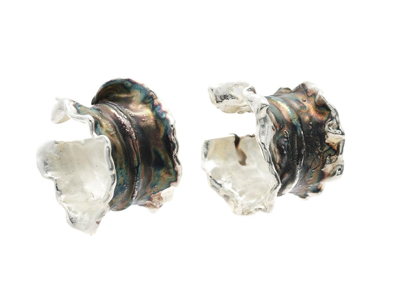 EARRINGS, silver-plated algae, Bluealg, pushback, height approx. 25,0 mm, weight 9,0 g.