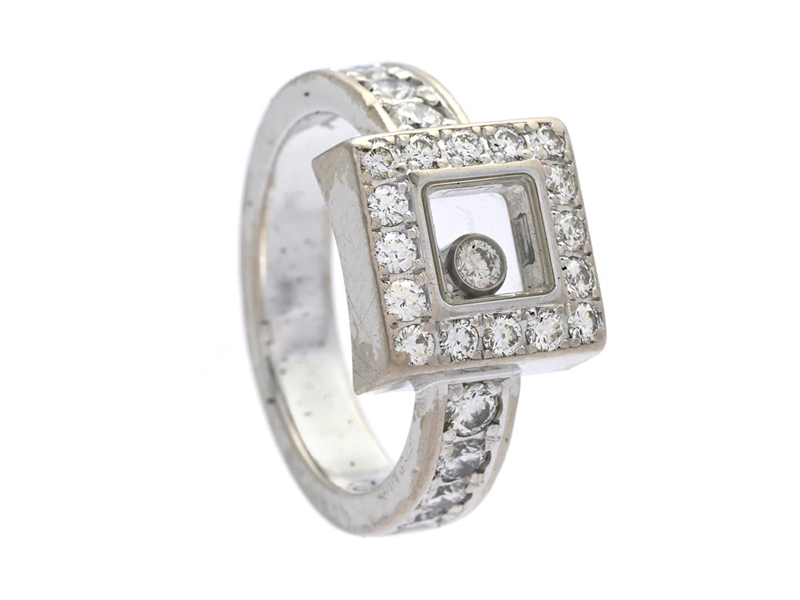 CHOPARD, ring, Happy Diamonds, 18K white gold, brilliant cut diamonds approx. 0,86 ctw, reference no 822939-1001, serial number 9761129, size 16 mm, weight 9,8 g, original box, paper box.
