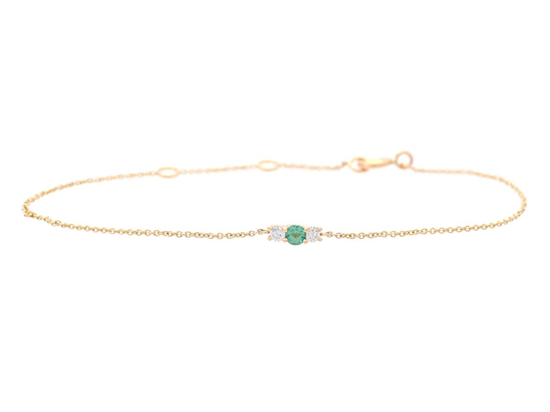 BRACELET, 18K gold, round faceted emerald approx. 0,09 ct, 2 brilliant cut diamonds approx. 0,07 ctw, approx. W/VS-SI, length 14,5/16/17,5 cm, weight 1,0 g.