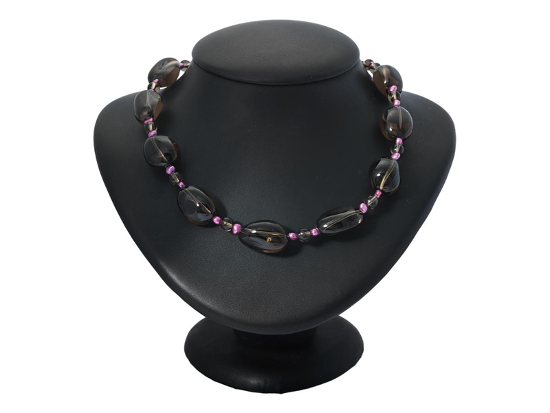 NECKLACE, smoky quartz, dyed cultured freshwater pearls, clasp in white metal, length 44 cm, weight 60,4 g.
