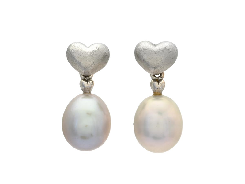 OLE LYNGGAARD, earrings with attachments, 18K white gold, brushed surface, cultured freshwater pearl, pushback, weight 6,6 g, original box.