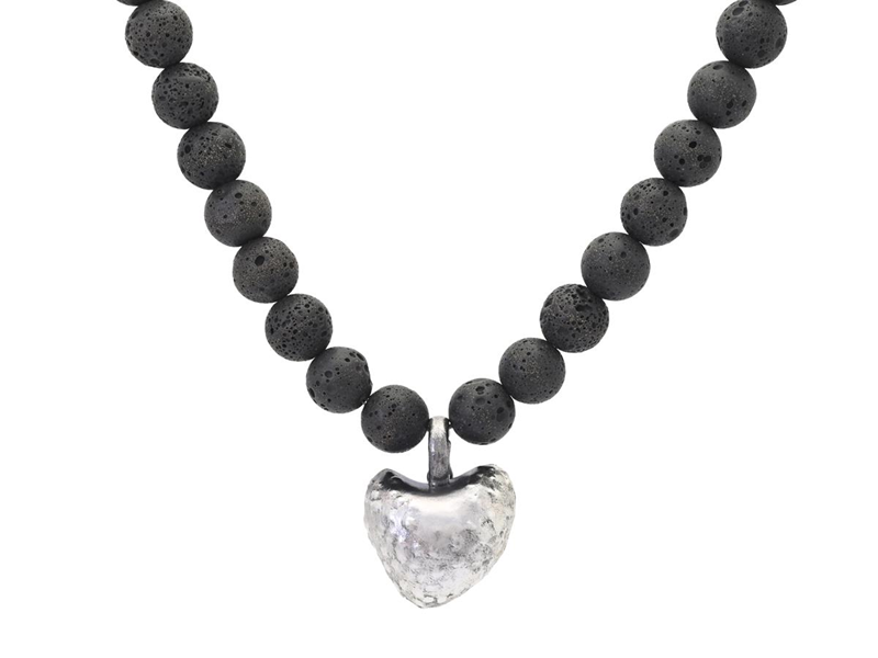 NECKLACE, silver-plated algae, Bluealg, measurements approx. 28,0 x 22,0 mm, lava beads, length approx. 42-47 cm, weight 45,0 g.