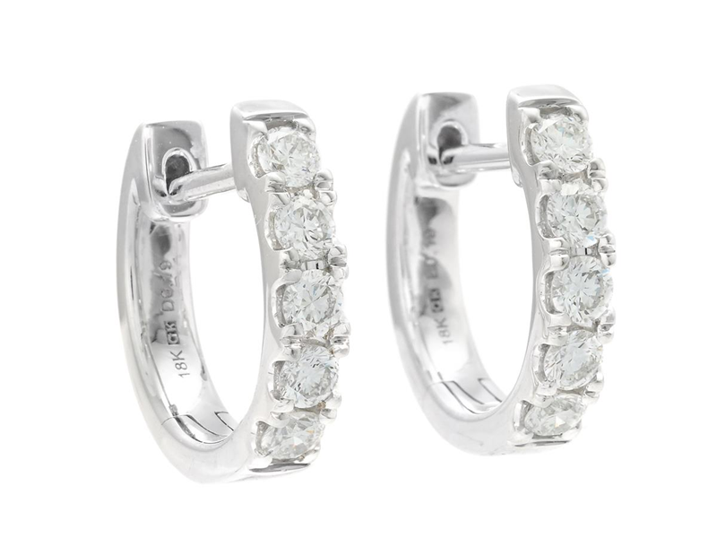 HOOP EARRINGS, 18K white gold, 10 brilliant cut diamonds 0,38 ctw, approx. TW/VS, pushback, height 12,0 mm, weight 2,8 g.