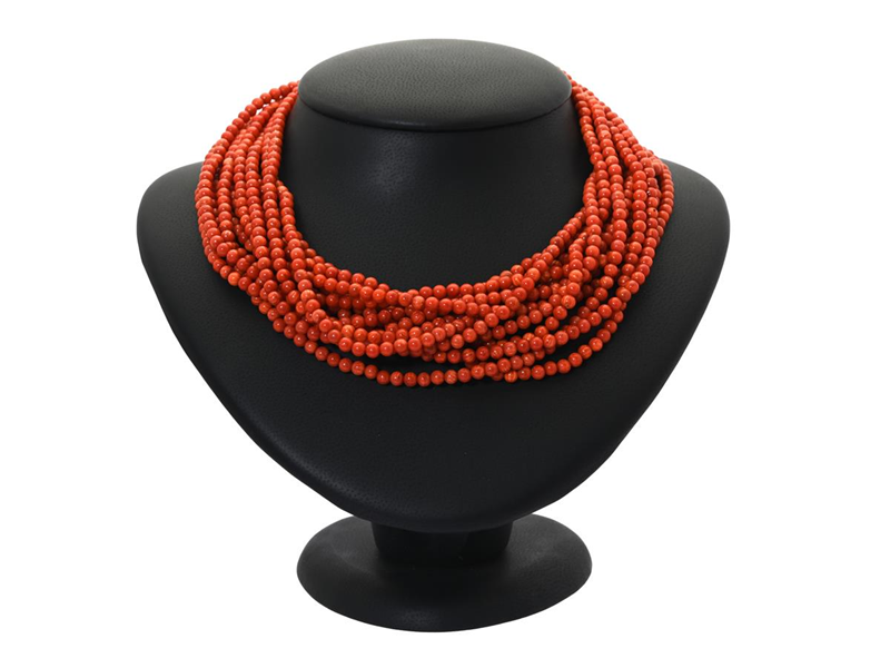 NECKLACE, 6 pcs, beads of coral approx. 3,5-4,0 mm, length approx. 80 cm, weight 104,6 g, not knotted.