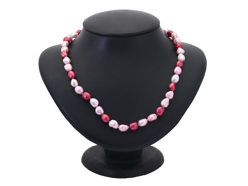 PEARL NECKLACE, cultured dyed freshwater pearls, pink red, knotted, length 45 cm.
