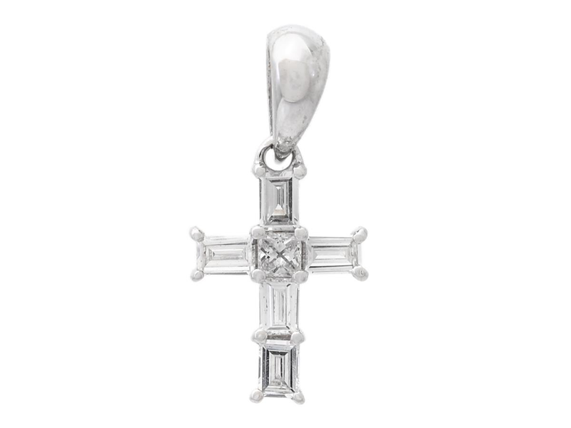 PENDANT, 18K white gold, cross, princess cut diamond 0,03 ctw, 5 baguette cut diamonds 0,12 ctw, approx. W/SI, measurements 8,5 x 6,5 mm, weight 0,3 g.