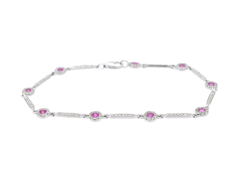 BRACELET, 18K white gold, 9 rubies 0,69 ctw, 162 brilliant cut diamonds 0,63 ctw, approx. W-Cr/SI-P, length 17 cm, weight 4,8 g, some diamonds with surface defects.