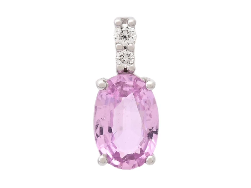 PENDANT, 18K white gold, oval faceted pink sapphire 0,45 ct, 2 brilliant cut diamonds 0,02 ctw, approx. W/SI, height 9,0 mm, weight 0,3 g.