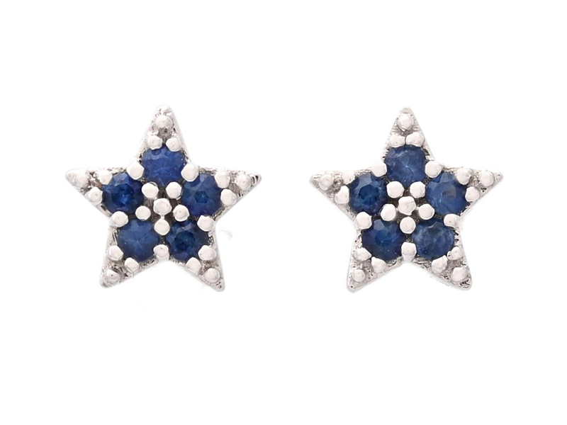 EARRINGS, 18K white gold, stars, 10 round faceted blue sapphires 0,15 ctw, pushback, measurements 6,0 mm, weight 1,3 g.