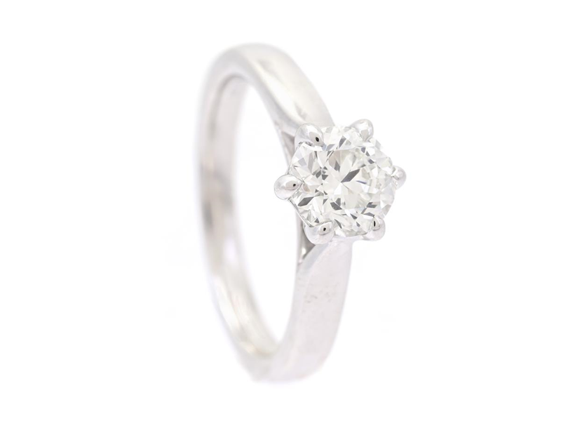 SOLITAIRE RING, 18K white gold, brilliant cut diamond 1,00 ct, TW(G)/VS2, GIA Diamond Grading Report 7511900910, size 16,75 mm, weight 5,4 g.