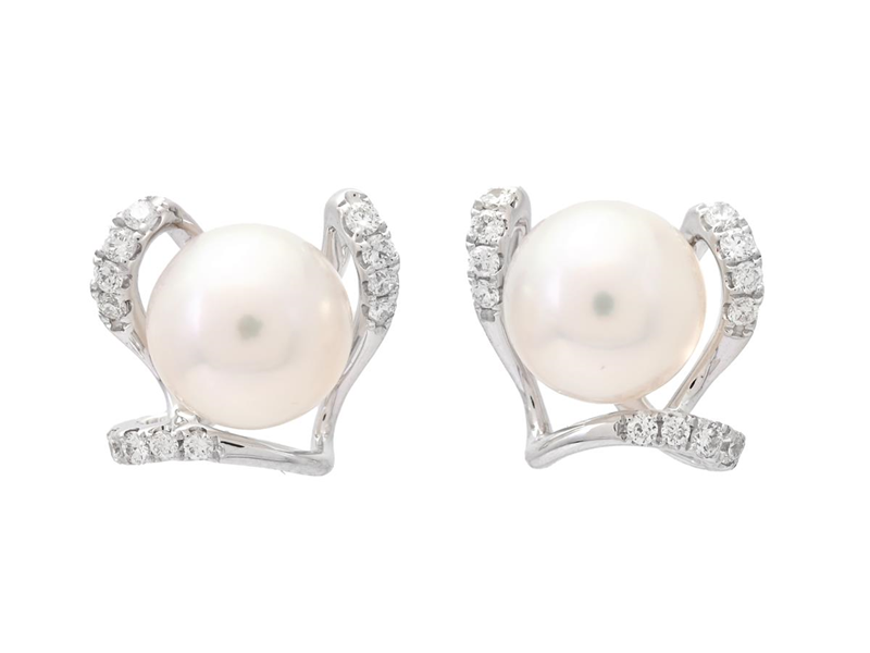 PEARL EARRINGS, 18K white gold, cultured pearls approx. 7,0 mm, 24 brilliant cut diamonds 0,17 ctw, approx. TW-W/VS-SI, pushback, measurements approx. 12,0 x 10,0 mm, weight 3,1 g.