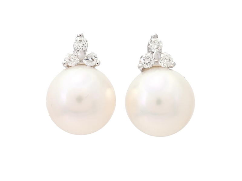PEARL EARRINGS, 18K white gold, cultured pearls approx. 8,5 mm, 6 brilliant cut diamonds 0,17 ctw, approx. TW-W/VS-SI, pushback, height 12,0 mm, weight 3,5 g.