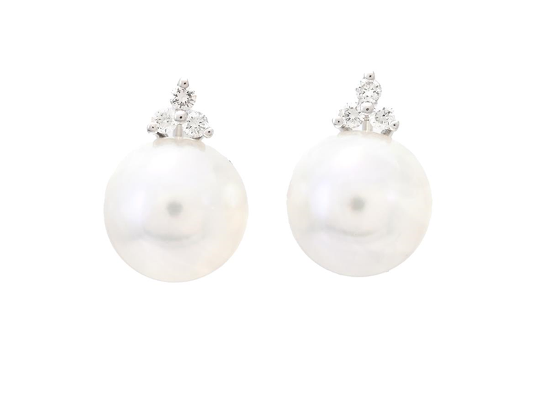 PEARL EARRINGS, 18K white gold, cultured pearls approx. 7,4 mm, 6 brilliant cut diamonds 0,06 ctw, approx. TW-W/VS-SI, pushback, height 10,0 mm, weight 2,2 g.