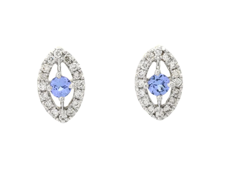 EARRINGS, 18K white gold, round faceted tanzanites 0,22 ctw, 32 brilliant cut diamonds 0,23 ctw, approx. W-Cr/SI, pushback, length 10,0 mm, width 6,5 mm, weight 1,8 g, some diamonds with surface defects.