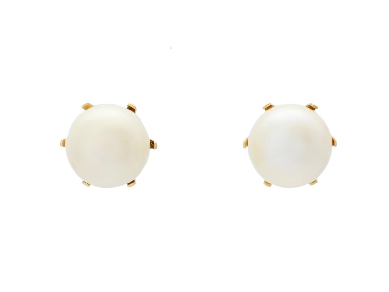 EARRINGS, 18K gold, cultured pearls, backings in yellow metal, damages on pearls, weight approx. 1,1 g.