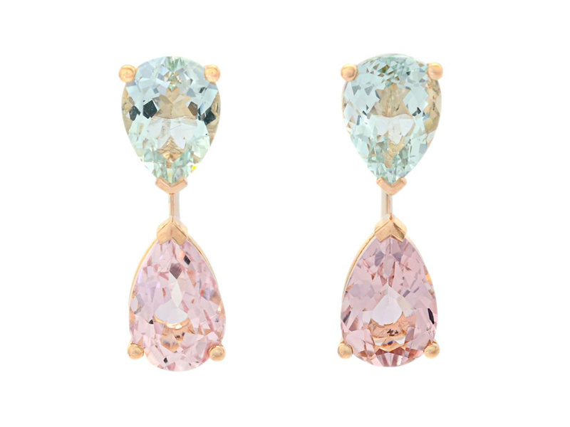 EARRINGS, 18K rose gold, drop shaped faceted pink tourmalines 2,83 ctw, green beryl 2,04 ctw, pushback, length 20,0 mm, weight 4,1 g.