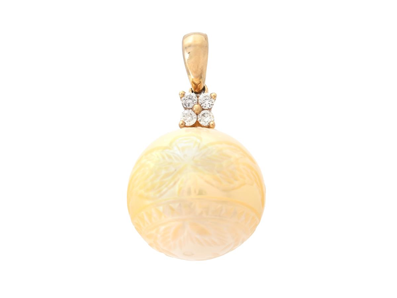 PEARL PENDANT, 18K gold, South Sea pearl approx. 13,5 mm, carved decor, 4 brilliant cut diamonds 0,07 ctw, approx. TW-W/VS-SI, height 22,0 mm, weight 4,0 g.