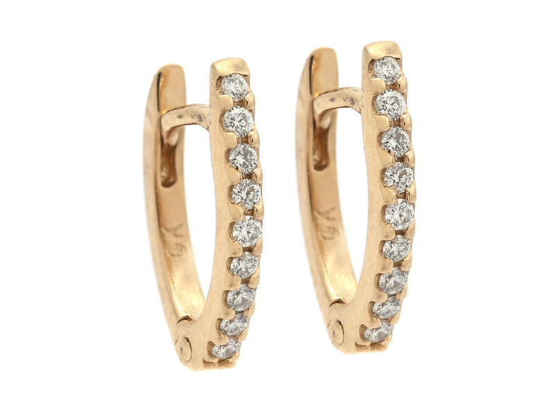 HOOP EARRINGS, 18K gold, oval, 18 brilliant cut diamonds approx. 0,06 ctw, approx. TW-TCr/VS-SI, pushback, height 10,0 mm, weight 0,8 g.