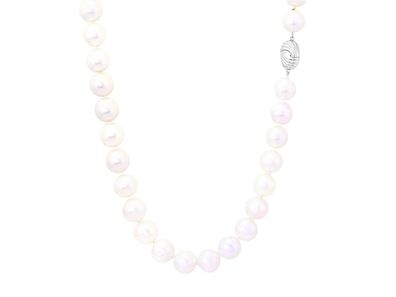 PEARL NECKLACE, cultured freshwater pearls, slight graduated approx. 11,0 - 13,0 mm, magnetic clasp in silver and white metal, length approx. 45 cm, weight 92,6 g.