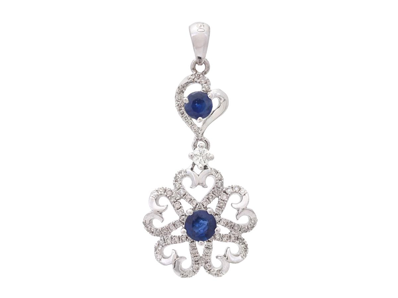PENDANT, 18K white gold, round faceted blue sapphires 0,39 ctw, 76 brilliant cut diamonds 0,24 ctw, approx. W-Cr/SI-P, length inc loop 29,0 mm, weight 2,2 g.
