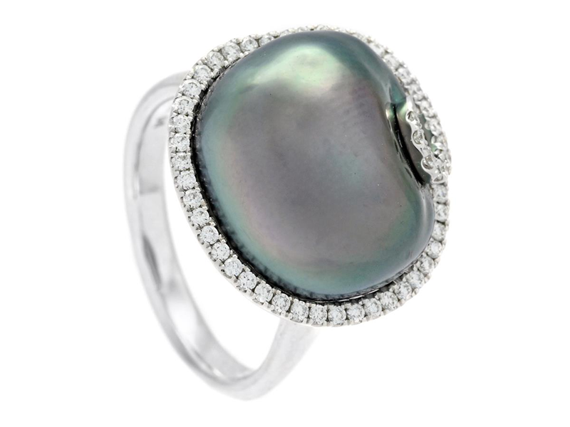 RING, 18K white gold, baroque Tahitian pearl (Keshi) approx. 15,1 x 13,9 mm, 51 brilliant cut diamonds 0,26 ctw, approx. TW-W/VS-SI, size 17 mm, weight 8,3 g.
