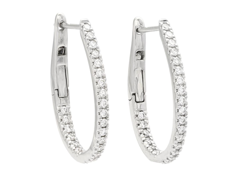 HOOP EARRINGS, 18K white gold, oval, 48 brilliant cut diamonds 0,32 ctw, approx. TW/VS, pushback, height 20,0 mm, weight 3,6 g.