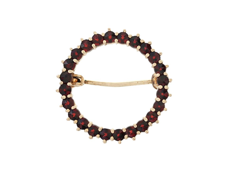 BROOCH, yellow metal, garnets, weight 2,9 g.