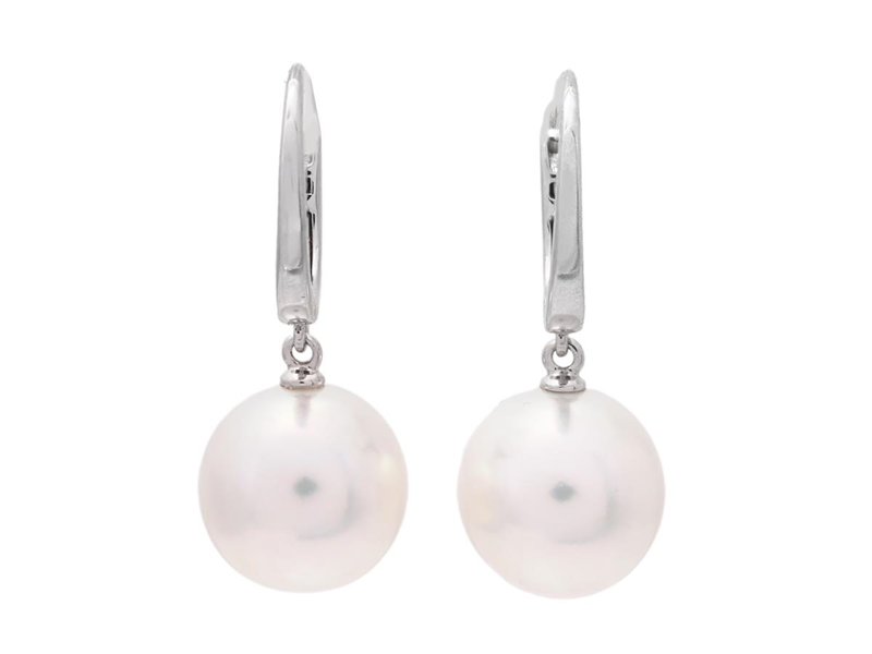 PEARL EARRINGS, 18K white gold, South Sea pearls approx. 9,8 mm, closeable hooks, length 24,0 mm, weight 4,4 g.