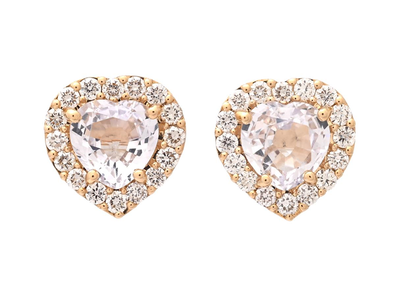 EARRINGS, 18K gold with 2 heartshaped diamonds 1,43 ctw, 32 brilliant cut diamonds 0,35 ctw, approx. TW-W/VS-SI, pushback, weight 3,4 g