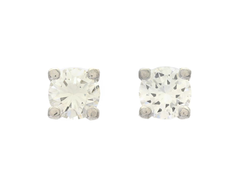 SOLITAIRE EARRINGS, 18K white gold, brilliant cut diamonds 0,62 ctw, approx. TW-W/VS, pushback, weight 1,3 g, one diamond with notch on the culet.