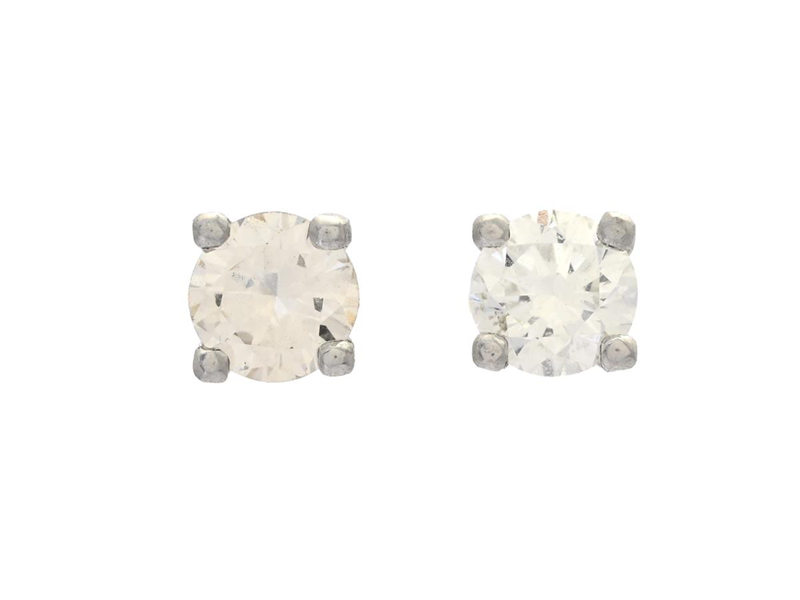 SOLITAIRE EARRINGS, 18K white gold, brilliant cut diamonds approx. 0,80 ctw, approx. W-Cr/VS-SI, one diamond with somewhat brown tone, pushback, weight 1,4 g.
