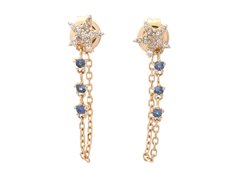 EARRINGS, 18K gold with 6 blue sapphires 0,12 ctw, single cut diamonds 0,09 ctw, pushback, length 23,5 mm, width 6 mm, weight 1,3 g