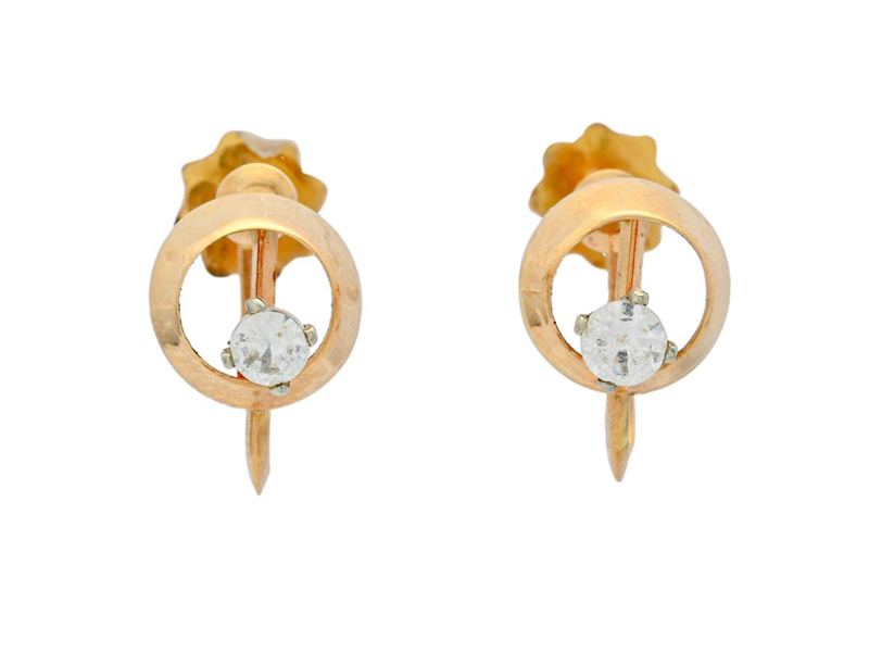 EARRINGS, 18K gold, white stones, height approx. 1,1 cm, screwbacks, weight 2 g.