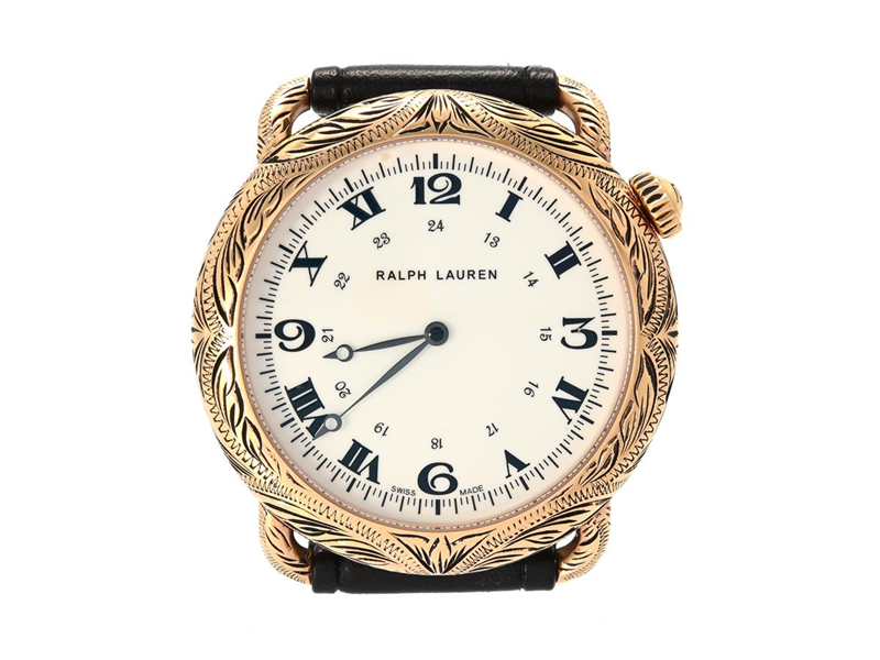 RALPH LAUREN, The American Western Round Watch, Cal RL514 (Piaget), Serial no. WAKMOO24, Ref no. RLR0911701, men´s wristwatch, 45,8 mm, 18K pink gold, self winding, sapphire crystal, leather strap (3 pcs), original buckle in 18K pink gold, approx. 2018, box, paper box.