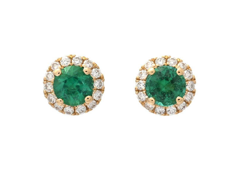 CLUSTER EARRINGS, 18K gold, round faceted emeralds 0,54 ctw, 28 brilliant cut diamonds 0,15 ctw, approx. TW-W/VS-SI, pushback, measurements 6,5 mm, weight 1,6 g.