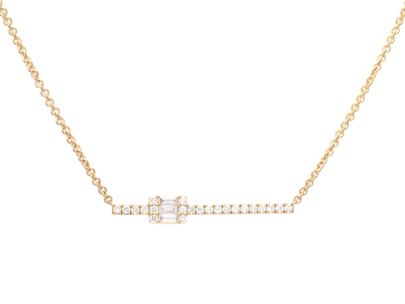 NECKLACE, 18K gold, 3 baguette cut diamonds 0,10 ctw, 22 brilliant cut diamonds 0,18 ctw, approx. TW-W/VS, the motif´s width 28,0 mm, length 42 cm, weight 3,8 g.