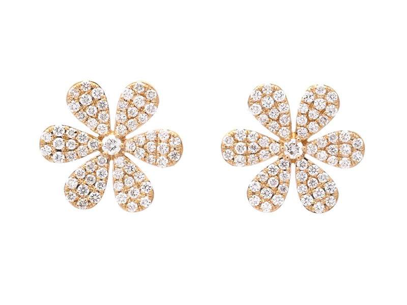 EARRINGS, 18K gold, flowers, 134 brilliant cut diamonds 0,39 ctw, approx. TW-W/VS-SI, pushback, measurements 10,0 mm, weight 2,5 g.