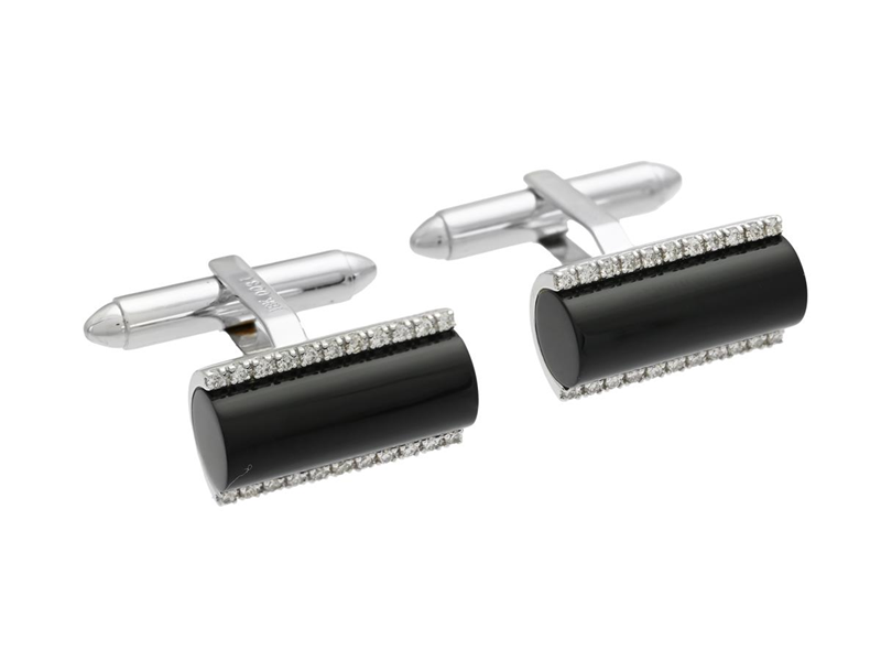 CUFFLINKS, 18K white gold, onyx approx. 15,50 ctw, 44 brilliant cut diamonds approx. 0,31 ctw, approx. TW-TCr/SI-P, length 17,5 mm, weight 12,1 g, some diamonds has notches.